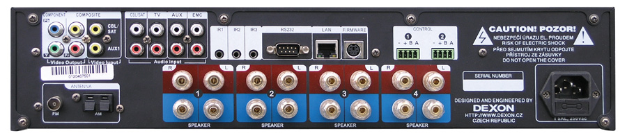 - vestavěný zesilovač pro buzení celkem 4 stereofonních zón, 4 × 20 W rms stereofonně