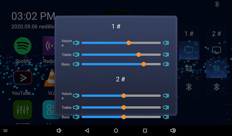 - digitální nastavení výstupní hlasitosti a další navigační tlačítka ve spodní liště obrazovky